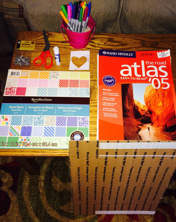 A sheet of poster board cut to size or a smaller piece of cardstock would also work depending on how many places you’re going to include . A white background works best to let the map stand out.