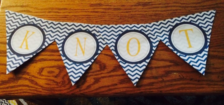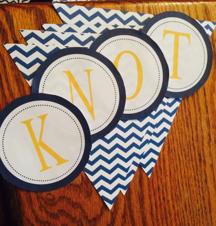 When my friend Jill told me the banner she wanted to order for her cousin’s nautical themed shower was $50 on Etsy, I told her to leave it to me. A quick, cheap trip to A.C. Moore and a few hours later Jill had a thrifty (and cuter) banner for her bride to be!