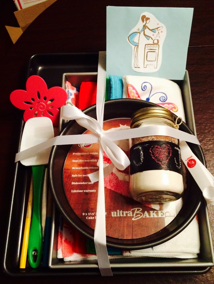 Buying from a bridal registry can be frustrating for guests, especially if the bride registers for a $100 gravy boat when you know full well she doesn’t cook (yes, you Fanning…). Sometimes it can feel impersonal giving a friend something like pots and pans, but these things can be necessities for couples who have recently bought a house, like my friends Jared and Jess. Instead of just throwing pans in a bag, I put together a baking essentials kit that will be functional long past the honeymoon.