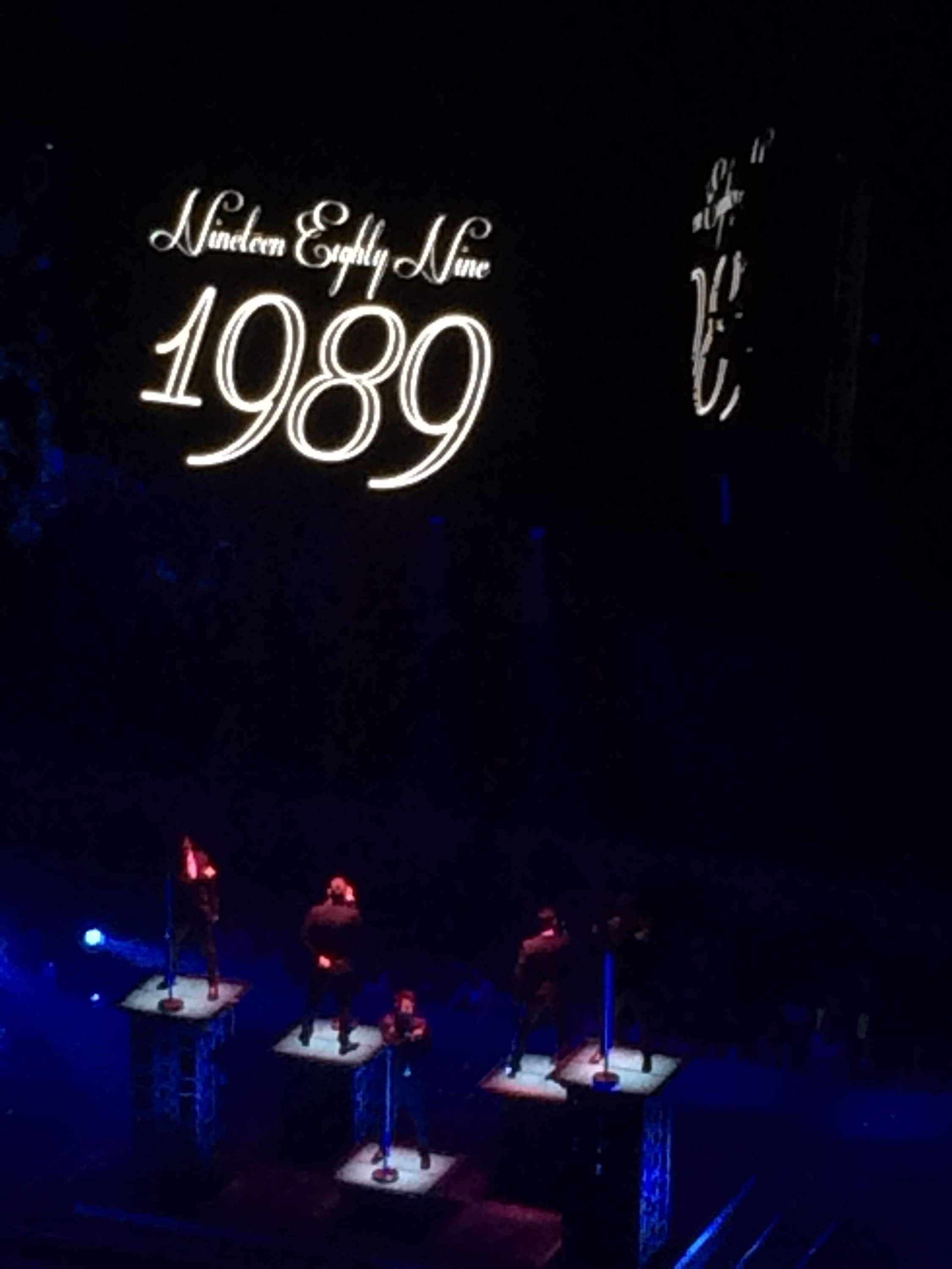 They did a lot of coordinated dancing on blocks that went up and down, and now I’m wondering if that was purposeful– like the new kids ON the actual blocks? They also really enjoyed pointing out what song was from what year.