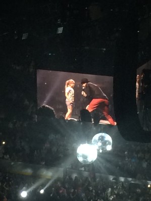 Also, what’s with the testicle like disco balls that dropped at this moment?!? I’m not sure exactly how it ended, but they sang Hangin Tough and Joey McIntyre did this: