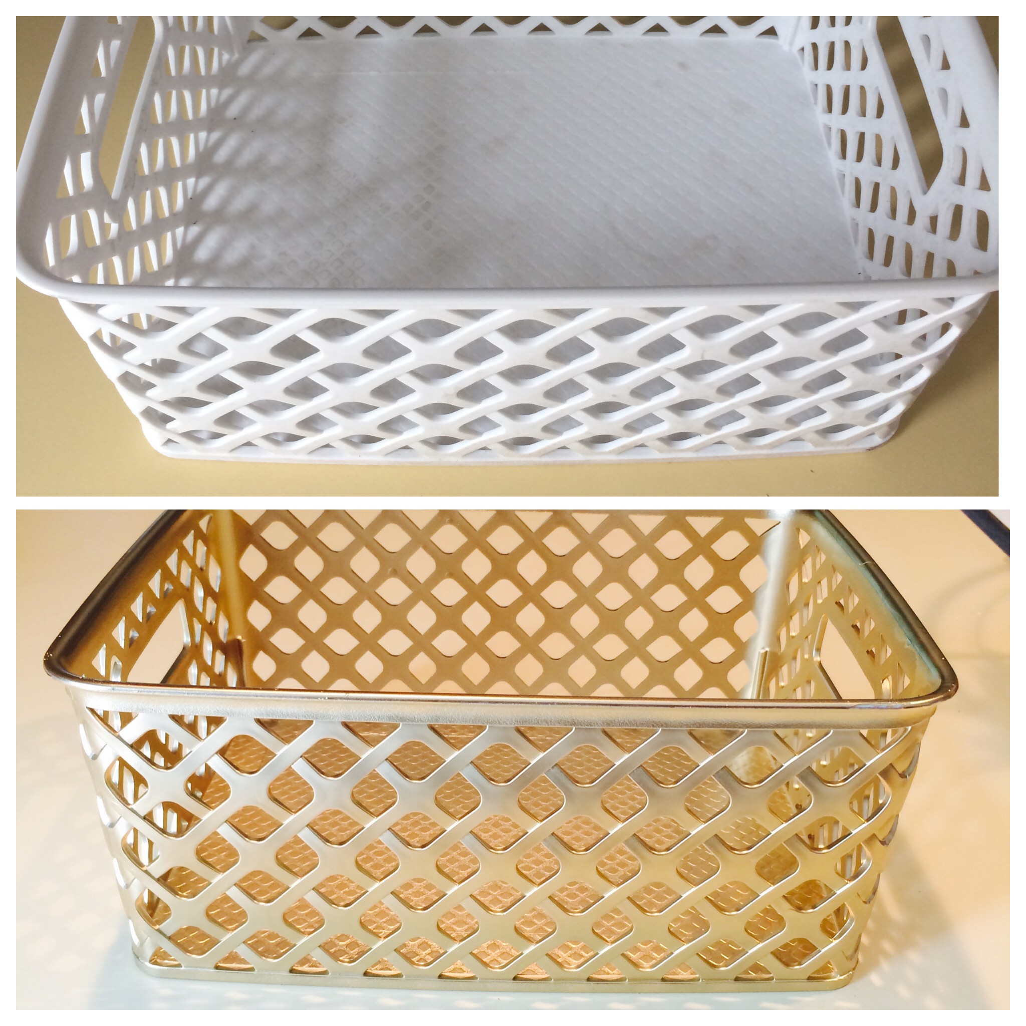 So I just discovered metallic gold spray paint. What?!?! I used it on these plain white baskets, and they turned out perfectly. I also spray painted magnets, boxes and contemplated painting Max. So if anyone wants to be an Academy Award for Halloween I gotchu.