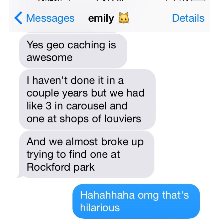 5. Don’t give up: The app brings you right to the area where the geo is hidden, but that doesn’t mean it will be easy to find. Usually there is a hint, but even that can make the find more puzzling. As you continue caching, you learn more and more weird spots that you should be checking, like the backsides of stop signs and under benches. Don’t take it too far though, as it can lead to breakdowns in friendships and relationships