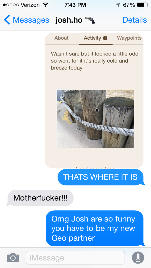 Geocaching is basically a worldwide scavenger hunt where people hide stuff and then you download an app and drive yourself insane finding it. Every time I explain this, the reaction is usually “So, you get money?” …No. “So, you get a prize?” …technically no, but the pride of finding the cache is reward enough. Geocaches range from thimble sized magnetic nanos to huge Tupperware containers hidden in plain sight. The goal is to find the container, sign and date the logbook inside, and trade small items that others have left. Typically they are put in areas of natural or historical interest, but sometimes they’re just hidden in parking lot lampposts. There are traditional ones, mystery caches, multi caches, virtual and cursed ones. There are events like ice cream socials and trash clean ups. Geocaching has been around for 15 years, and there are over 6 million active geocaches in the world right now with over 2 million crazies looking for them. Ever seen someone wandering around a parking lot looking aimless? Geocacher. That family always posting pictures of themselves with key chains? Geocachers. People who all of a sudden veer off the path in a park into the thorny woods? They’re all geocachers, not weirdos like you thought.