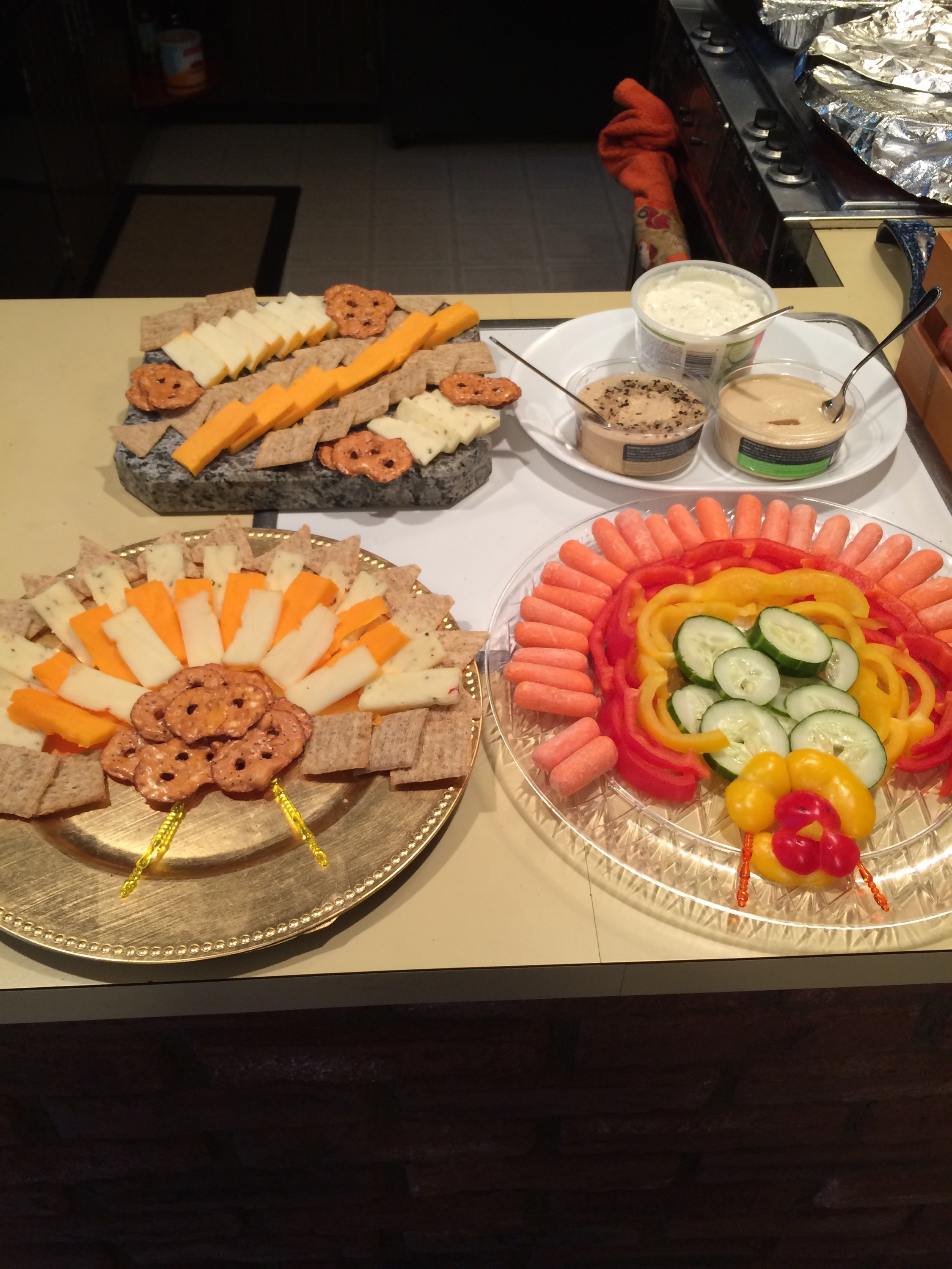 Cheese, crackers and veggies, hummus and dip