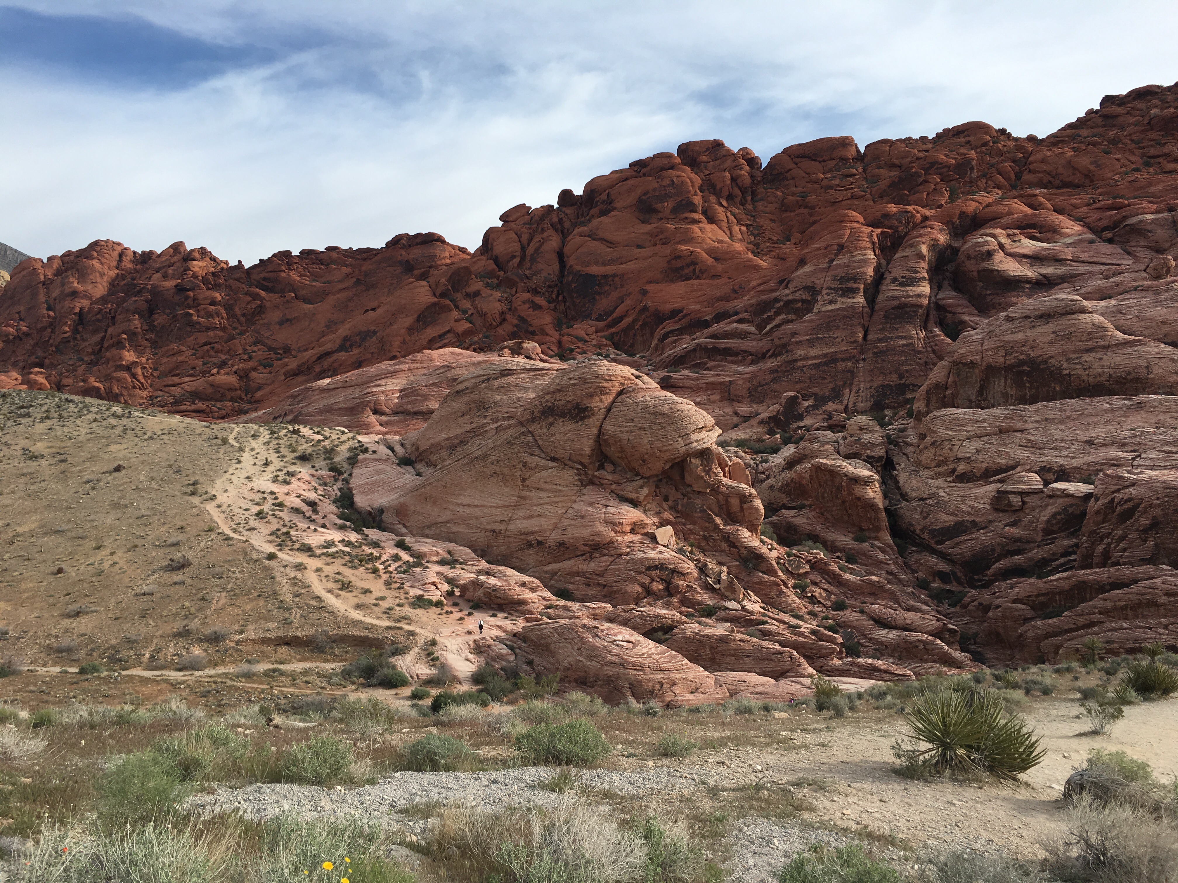 Day 2: Drove to Red Rock Canyon, about 30 minutes outside the city. It was awesome, but I got sunscreen in my eye and since we’re in a desert, there was no water around to wash it out, and I basically was blind for the whole thing. This picture is from the first scenic stop, right before I lost my vision.