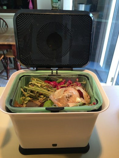 A countertop compost bin ($20) is compact and keeps food scraps out of the trash. Its design prevents odors or insects from invading your kitchen, and when it gets full, it can be dumped in your friendly local compost pile. You can also include dryer lint and food soaked paper towels (they break down with all of the other pieces).