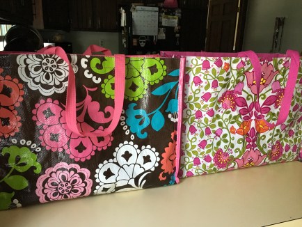 And they’re cute. I try to remember to not only bring them to the grocery store, but also when I go to other stores like Target. When I was visiting the West Coast, most places didn’t even offer plastic bags, or charged a small fee. Occasionally I’ll collect some bags to use for recycling or traveling, so they can be useful, but all in moderation.