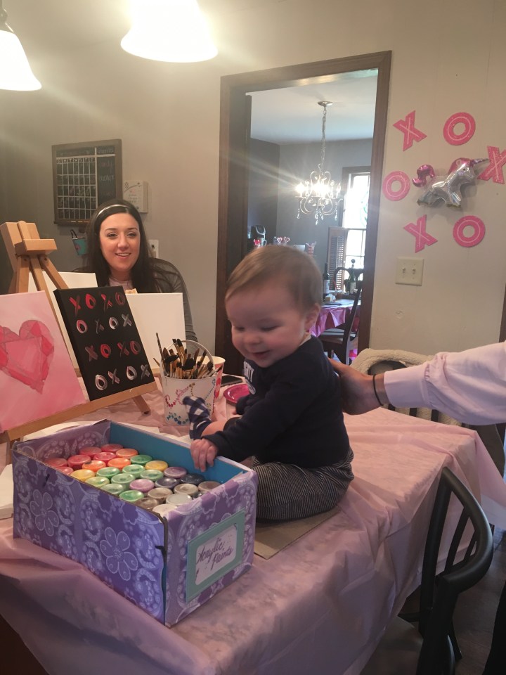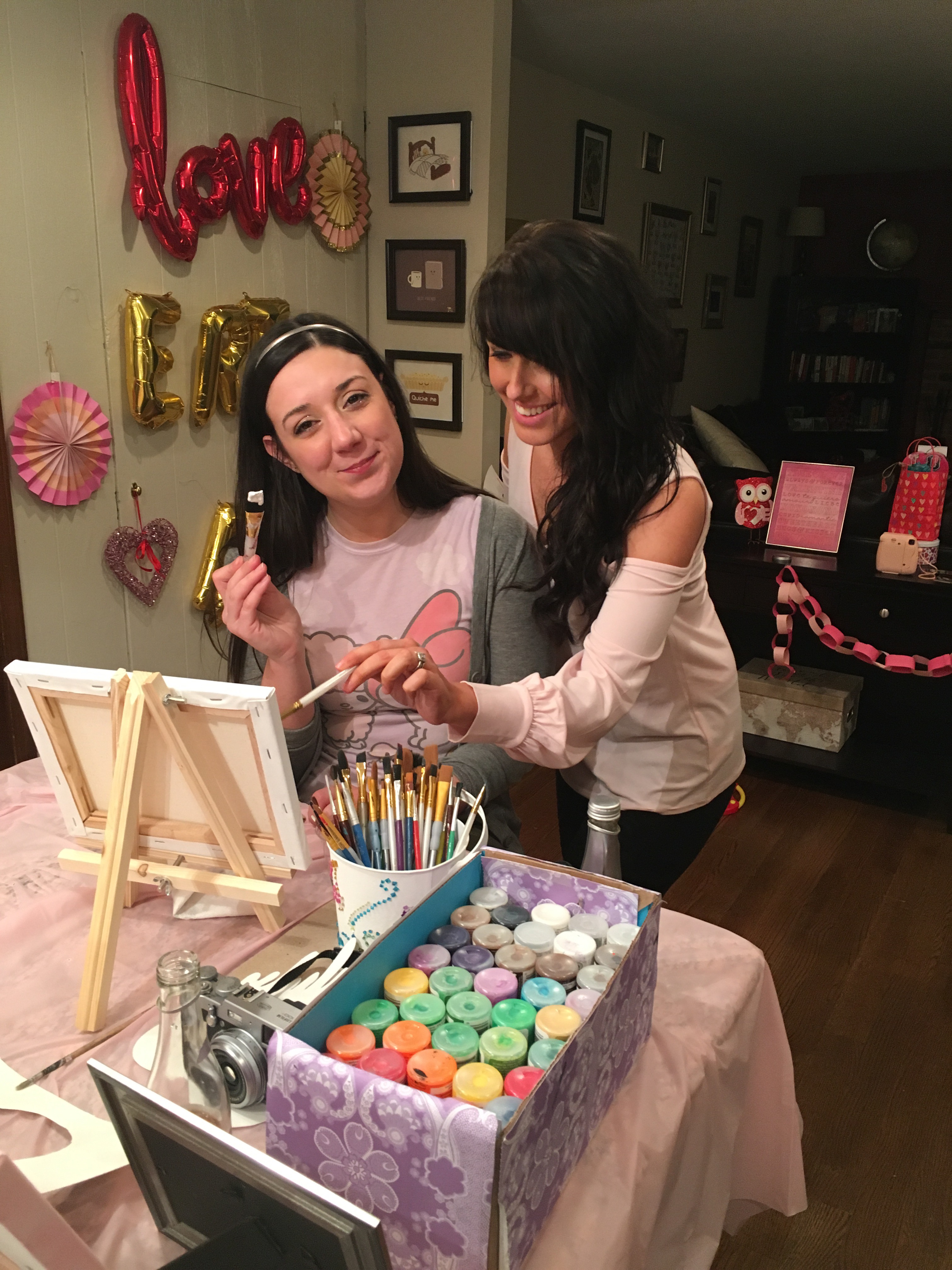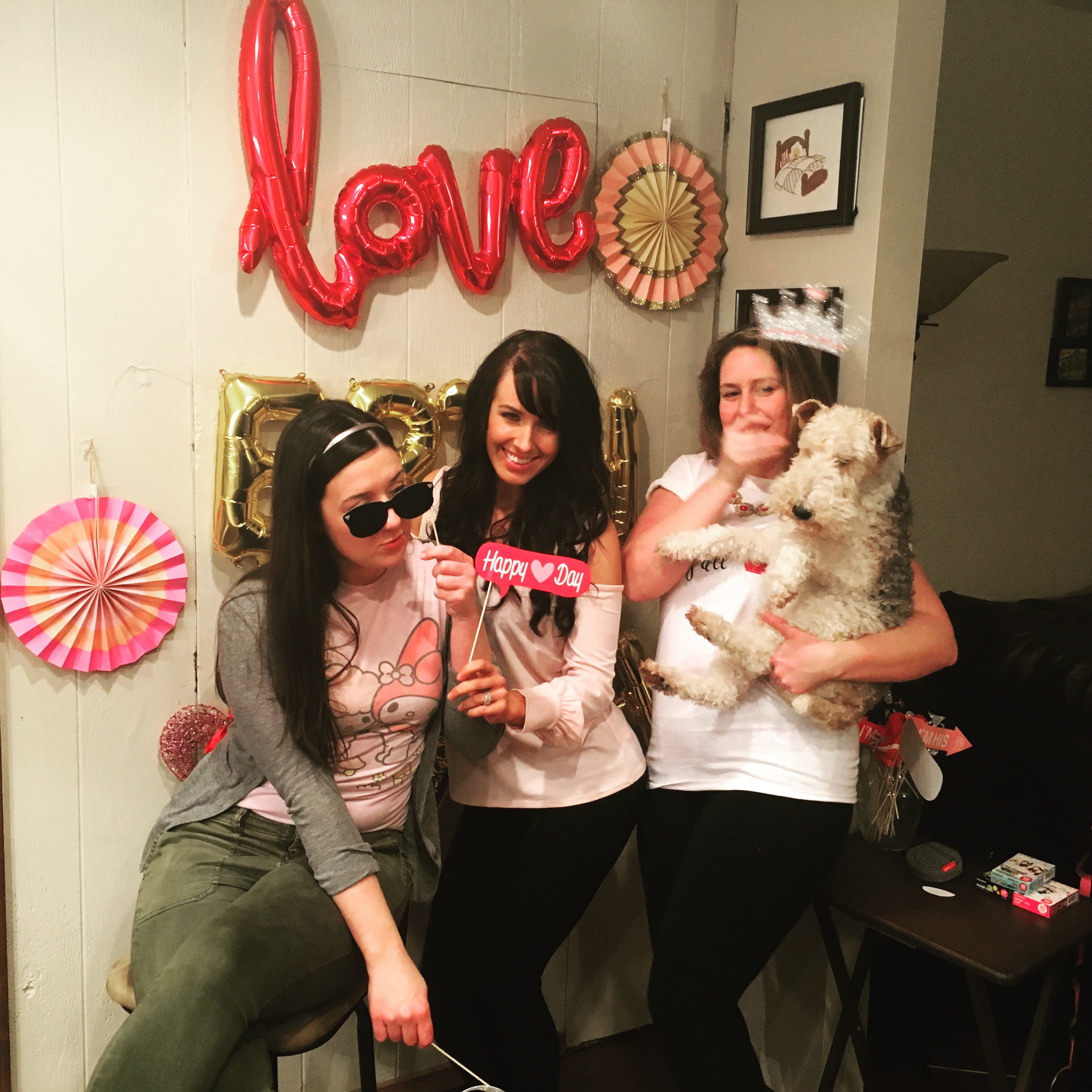 I love Valentine’s Day…it’s a day devoted to celebrating candy, pink, hearts, glitter…basically all of my favorite things. This year I had a few girlfriends over to enjoy wine, cheese and crafts, and even though we said No Boys Allowed wed, we had some (very adorable) party crashers