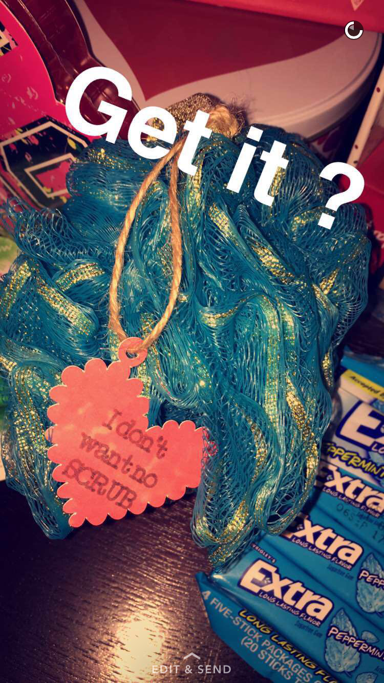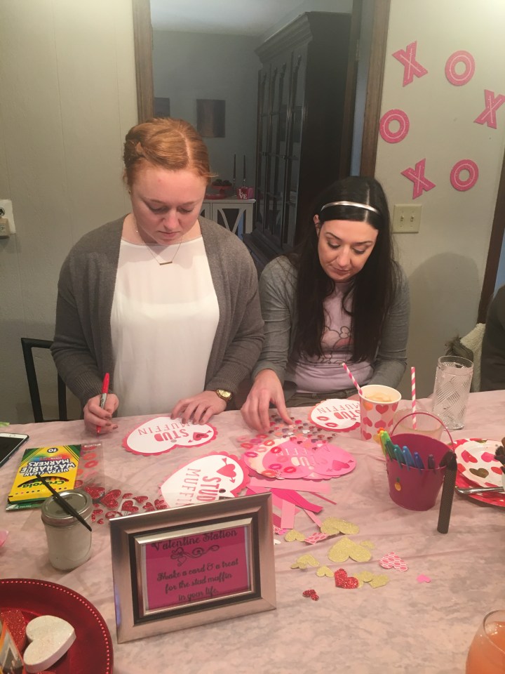 Stud Muffins— At the beginning of the party, we whipped up a batch of chocolate chip muffins (and Lindsay had brought some delicious brownie cupcakes). People designed a “stud muffin” valentine and then filled a little tin with the muffins and other desserts. Jen even took a whole gallon freezer bag full of Krispy Kreme’s. I doubt any of the muffins got home, but it’s the thought that counts.