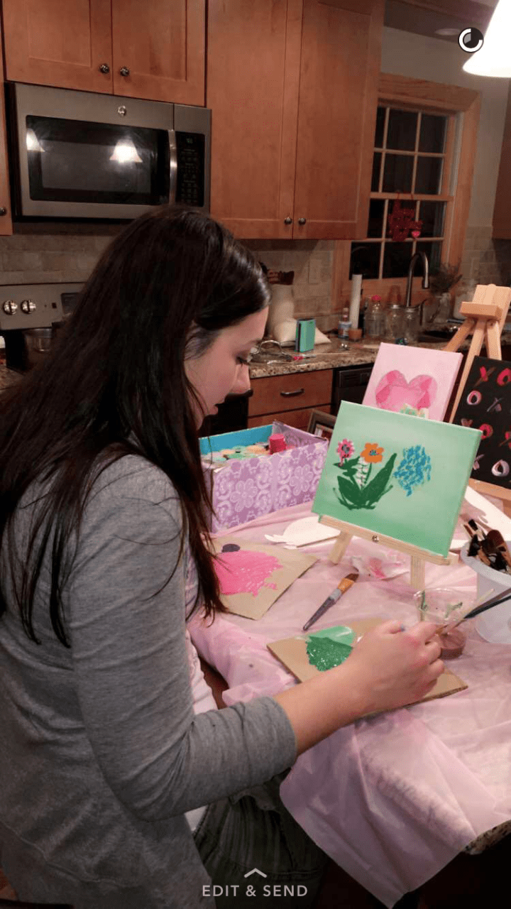 Heart Art Painting– I bought a 10 pack of mini canvases ($4) and a few mini easels ($3), put out some paint and brushes, and voila…your own custom painting!