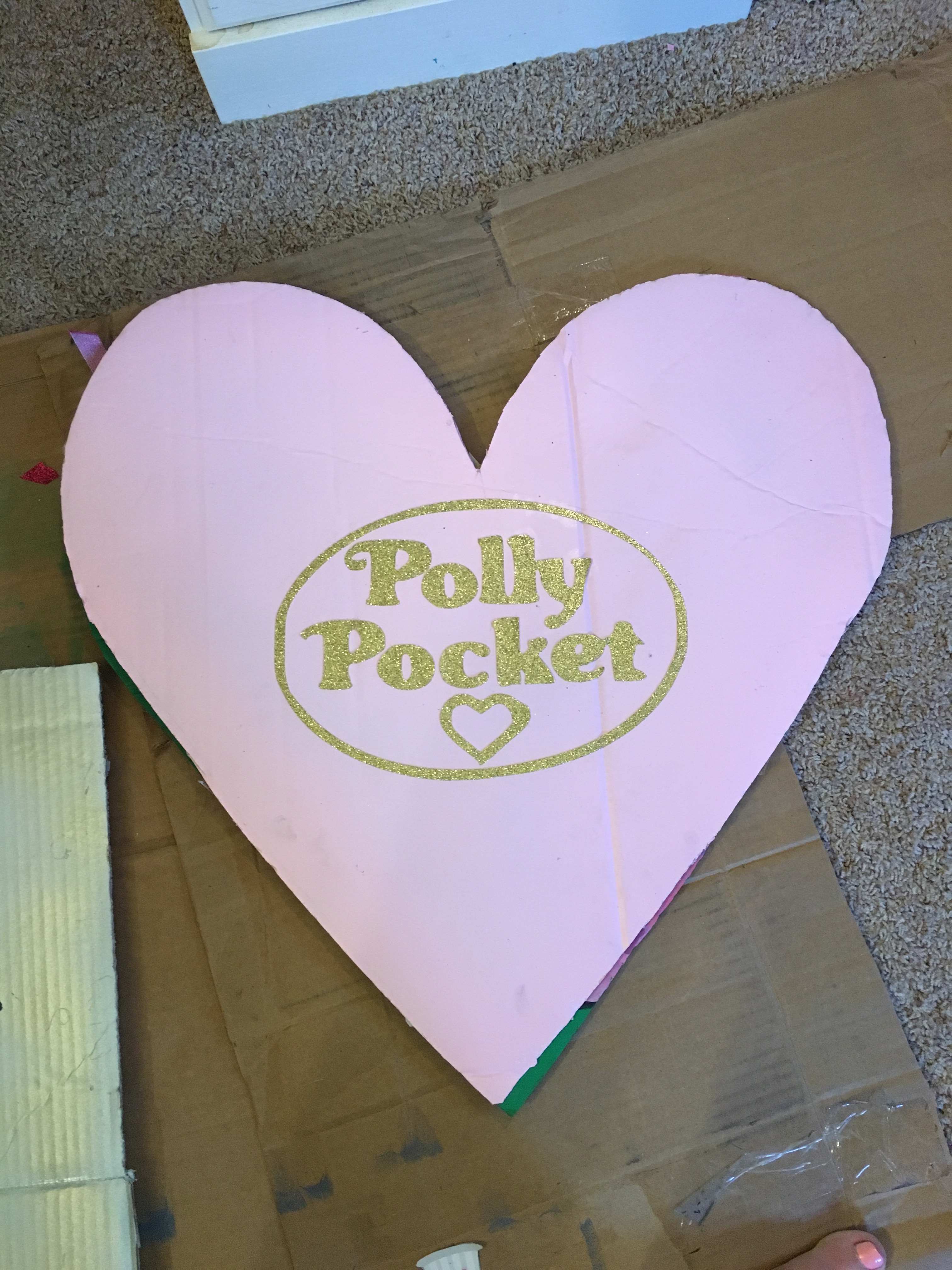 Obviously mine needed more attention to detail. First I cut out the Polly Pocket logo on my Cricut on gold cardstock and attached it to the front