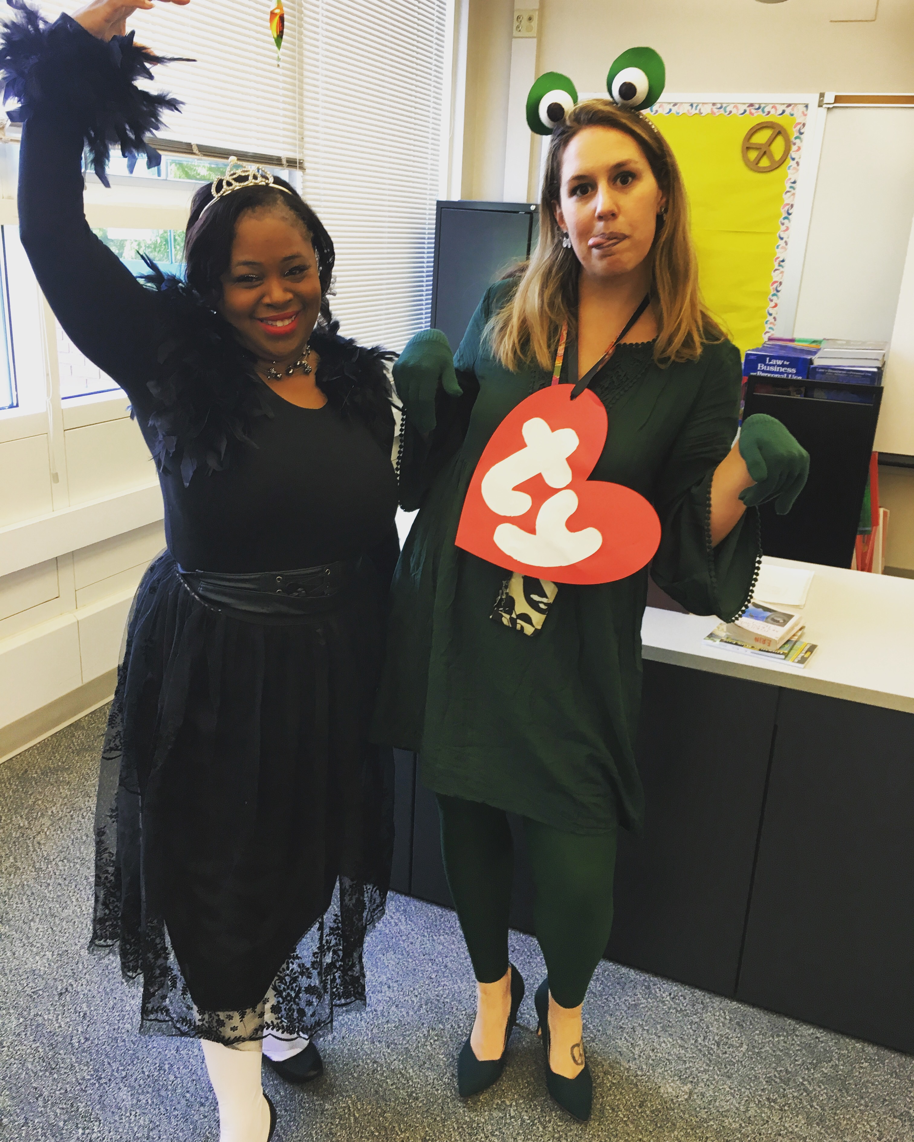 Add a green dress, gloves and shoes, and of course my fly earrings, and I’m ready for a parent teacher conference after a day of costuming.