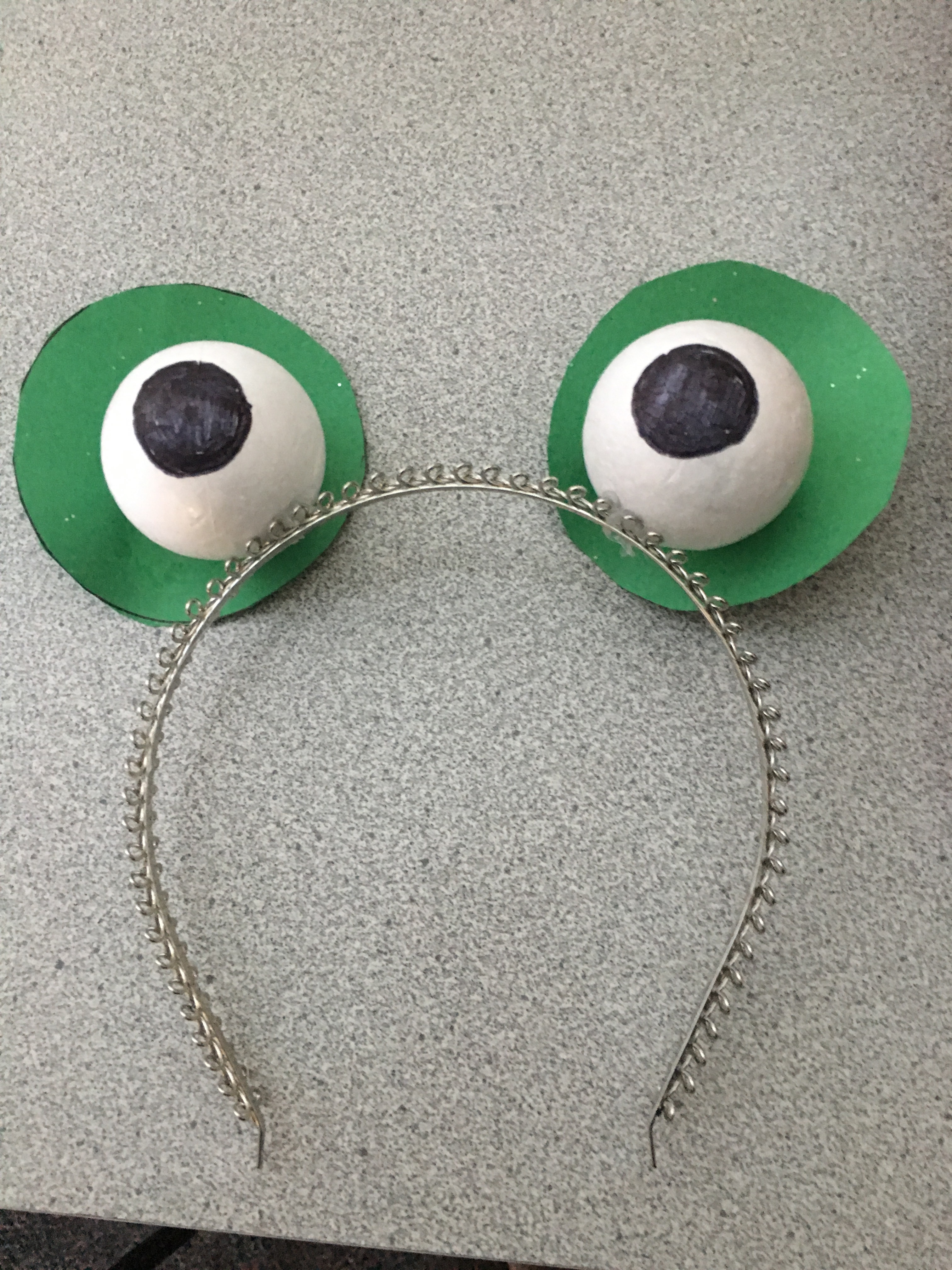 I glued two styrofoam balls with black pupils to a headband for the eyes, and crafted a TY tag with my Cricut.